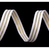 Webbing 95% polyester, 5% lurex Width 30 mm Weight 37 g/m² Wash 30°c in washing machine Warm iron max one dot No tumble dry No dry cleaning Do not bleach Sold in increments of 50 cm. Ex : specify 1 for 50cm, 2 for 1 m, 3 for 1.5 m, etc...